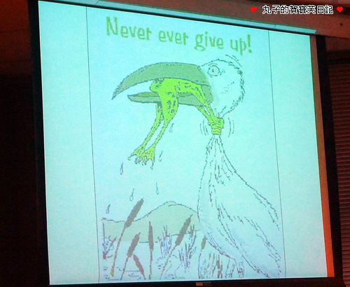 最後她跟我們分享永不放棄,以前在那裏跌倒就從那裏爬起來,現在跌倒要換個地方再爬起來,
