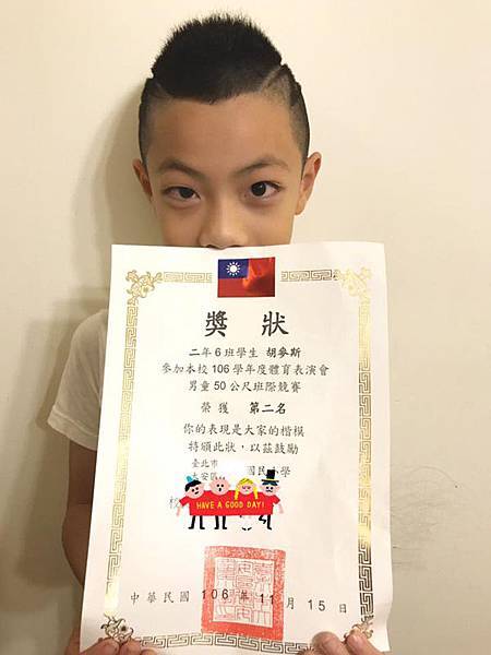 2018/1/15二年級上學期末~拿到榮譽獎狀....