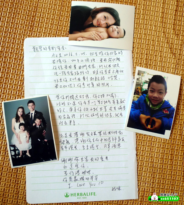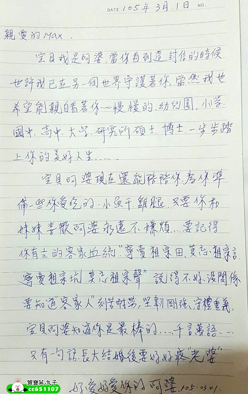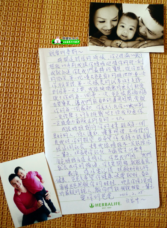 我跟老公分開寫信給麥斯~結果寫完我們看彼此的信~都會心一笑~因為對孩子的期望都很類似...