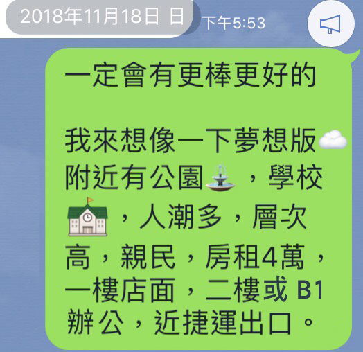 透過不斷禱告~找到符合我夢想中的店面~1/4看店面1/5確認租1/8簽約~2月預計完成裝潢~3月開幕...